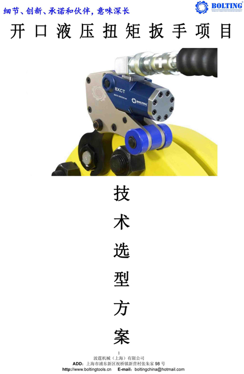 業(yè)主方之前從武漢購買過一套德國品牌液壓扳手,使用情況并不理想,由于液壓泵和開口液壓扳手較為笨重,故不考慮。